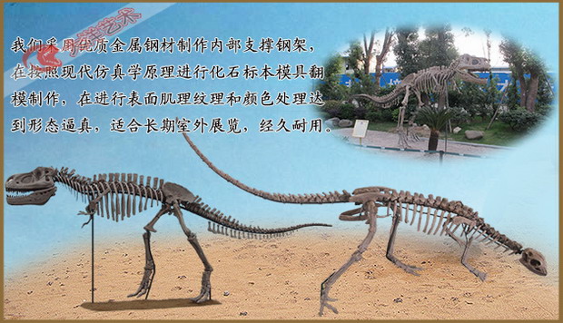 2. 仿真恐龍骨架標(biāo)本模型展品我們采用優(yōu)質(zhì)金屬鋼材制作內(nèi)部支撐鋼架,在按照現(xiàn)代仿真學(xué)原理進(jìn)行化石標(biāo)本模具翻模制作,在進(jìn)行表面肌理紋理和顏色處理。